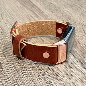 Brown Grain Leather Strap Fitbit Charge 5 Band Rose Gold Jewelry Women Bracelet