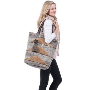 Brown & Gray Frayed Oversized Tote Shoulder Bag