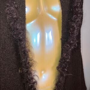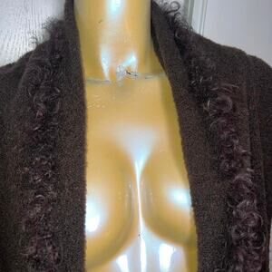 Brown Hair Like Wool Cardigan With Fuzzy Trim