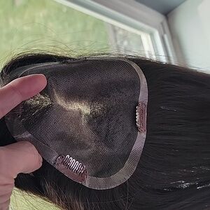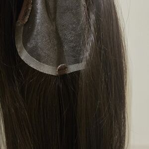 Elegant brown hair topper for a natural look. Perfect for any occasion. no tags but previous owner said it was a jon renau topper. she is in great condition. 14 inches at base, sides are 11 inches
