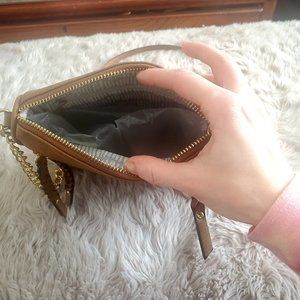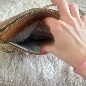 Beautiful, brand new Violet Ray Crossbody Purse. PU leather. Smooth, soft brown suede feel with light gold accents. Lots of pockets! Tags attached.