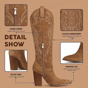 Step out in style with these elegant brown heeled boots. Perfect for any occasion, they offer both comfort and sophistication.