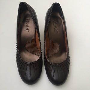 Slip on these chocolate brown heels before you head to the office, dinner, or just to run errands. They're so comfortable! Very gently worn- still in excellent condition. Size 7. True to size.