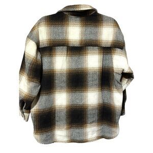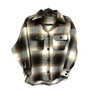 Brown Heritage Plaid Flannel Button-Down Med-Weight Cozy Shacket Top (Sm) ~NWOT