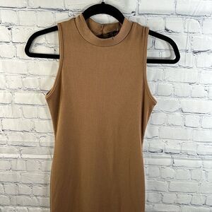 👗 Brown High Neck Ribbed Maxi Dress - Size Small - Perfect Condition!