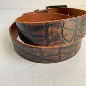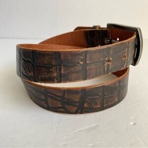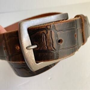 Brown Italian Leather Belt Mock Croc Embossed Print Brushed Silver Buckle Mens Large