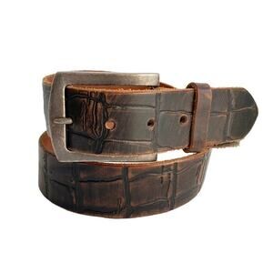 Brown Italian Leather Belt Mock Croc Embossed Statement Silver Buckle Mens Large