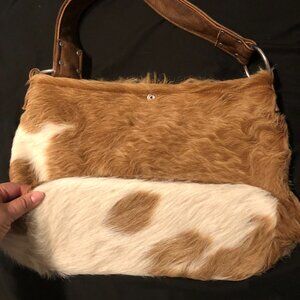 Brown Ivory Multi-Color Cowhide Fur Tote Bag