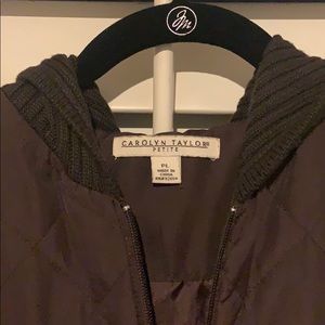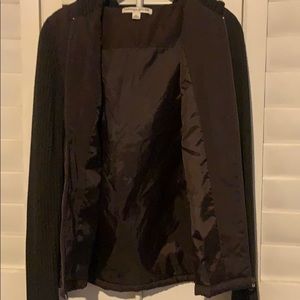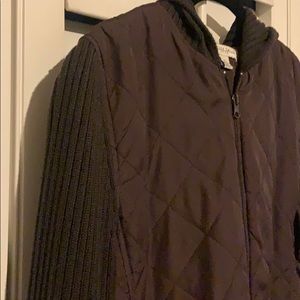 Good used condition. Brown jacket with sweater sleeves and thin puffer core. Make me an offer