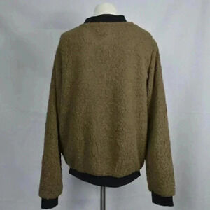 Brown Jacket Faux Shearling/fur Pockets, Zipper, Ribbed, and Heam Details