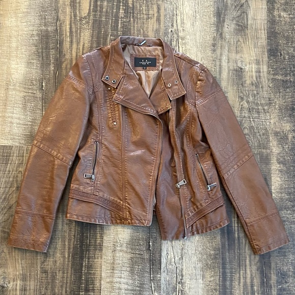 Elevate your style with this stylish brown jacket. Crafted for comfort and sophistication, it's a must-have for any wardrobe. EUC. The materials/care tag noted in photos. Super cute jacket! Smoke free and pet friendly home.