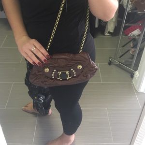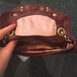 Perfect condition. Barely used. No signs of wear on inside or outside of bad. Comes with optional gold chain.