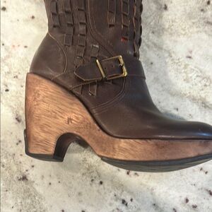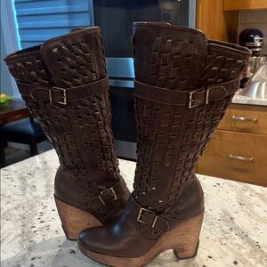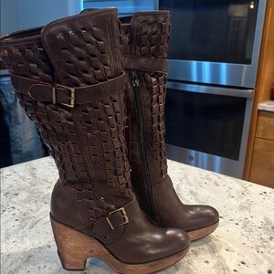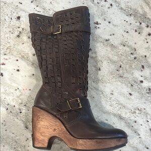 Brown Kenneth Cole Leather Wedge Heel Boots