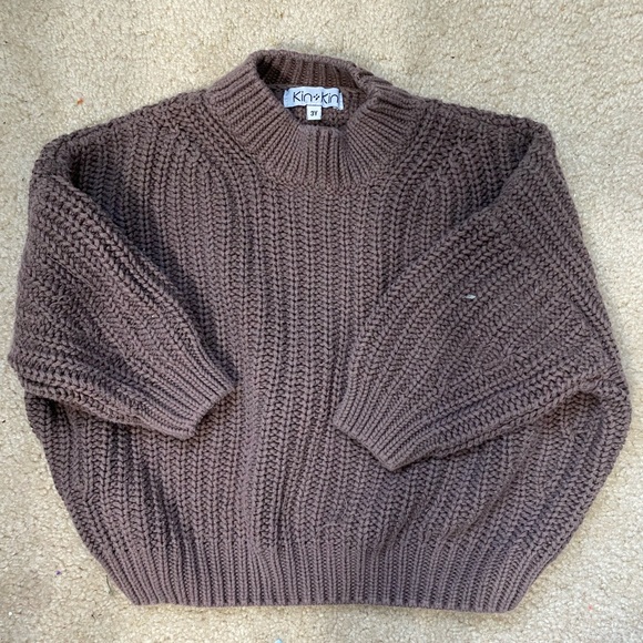 Chunky cotton sweater in size 3y from the brand Kin and Kin. Loose fit, slightly cropped. Gender neutral brown would work for toddler girls or toddler boys. Like new, worn maybe 2-3 times. Smoke free pet free home.