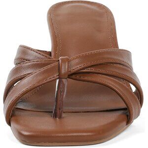 Brown Kitten Heels Faux Leather Women Flip Flops Strappy Square Open Toe Slides