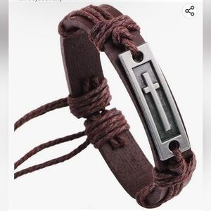 Brown LEATHER Cross Charm Adjustable Bracelet