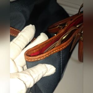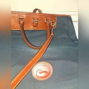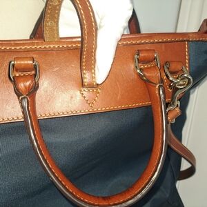 Brown LEATHER and Navy Canvass Men's Messenger Bag