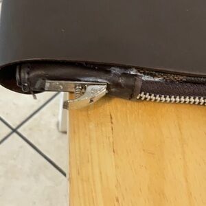Stylish and sophisticated, this brown checkered Louis Vuitton men's bag is perfect for any occasion. Crafted with premium materials, it offers both durability and elegance. The adjustable strap ensures comfort and versatility. See pic one hook is broken see before purchase can be replaced se small wear on corner can still carry as shoulder bag