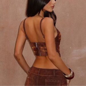 Stylish brown lace-up tank top perfect for any occasion. Features a unique design with a comfortable fit. Xs/small