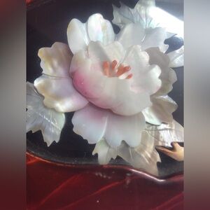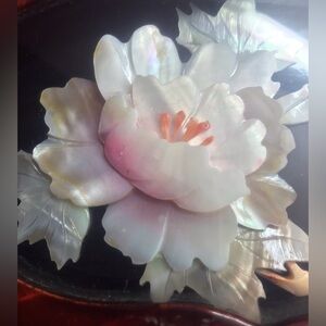 This Vintage Brown Lacquer with Gold Latch and Mother of Pearl Shadow Box Top Red Satin with Roses on Inside is in good condition. The latch works but is a little bent. The fabric on one side of inside lid has come away from side. See pics. Otherwise in great condition. Measures 7.5” wide x 4.5” deep x 2.75” tall.