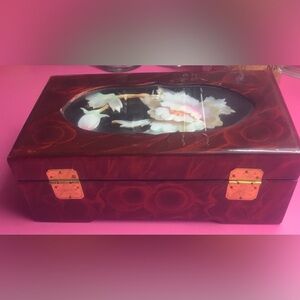 Brown Lacquer with Gold Latch and Mother of Pearl Shadow Box Top Red Inside