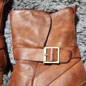 Step out in style with these chic brown leather ankle boots. Heel is 3.5". Excellent condition.