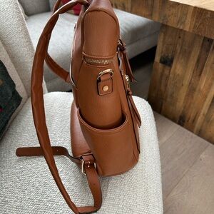 Stylish and versatile brown leather backpack perfect for everyday use. Features multiple pockets for easy organization. Ideal for work or casual outings.