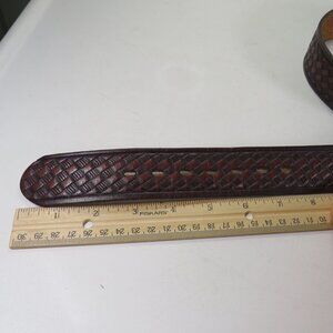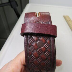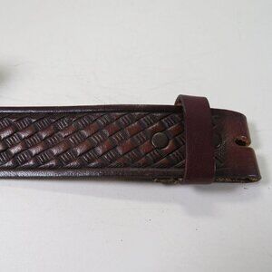 Brown Leather Belt tooled basket weave detail embossed size 36 and 1 1/2" wide