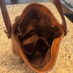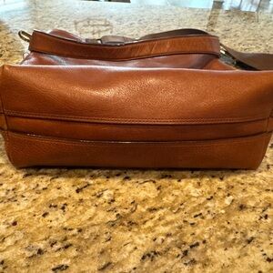 Adorable brown leather Shoulder or Crossbody handbag with gold accents. Roomy bag with multiple internal storage pockets. Perfect for any occasion. Excellent condition