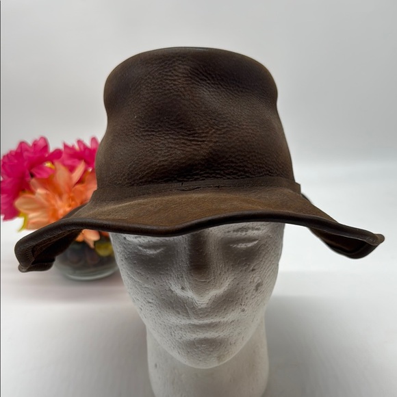 Brown Leather Bucket Hat Size Small
