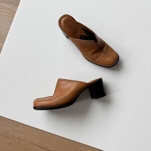 Brown Leather Clogs Mules Chunky Heel / Great condition: minor scuffs / The soles are in great shape / Label: Clark’s / Label size: 6 / Heel: almost 3”
