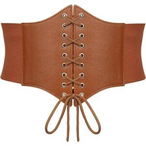 Brown Leather Elastic Wide Stretch Belt Corset Top Halloween Cosplay Costume NWT