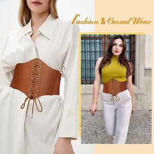 【Stretchy Belt Strap】---This fashion lace up corset belt is made from high quality elastic band, front vegan leather + straps and metal back snap buckle. Not easily deformed, no fading and durable to use; Super soft and comfortable, and will not roll up and down.