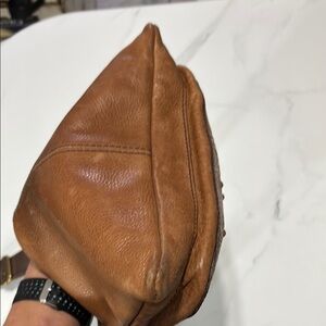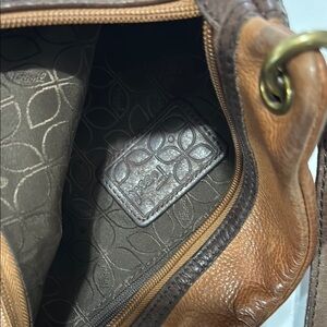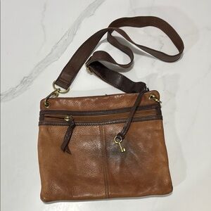 This stylish brown leather crossbody bag features a beautiful floral design. Perfect for everyday use, it combines elegance with practicality.