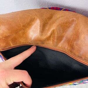 Brown Leather Fringe BOHO Embroidered Western Pattern Crossbody Flap Bag