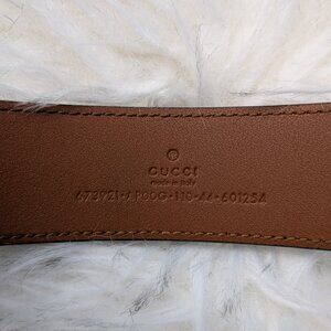 Featuring a sleek design, this brown leather belt is characterized by a subtle Interlocking gold G detail. A gold-toned square buckle completes the accessory. Belt was purchased directly from Gucci in Singapore and never worn.