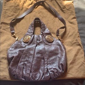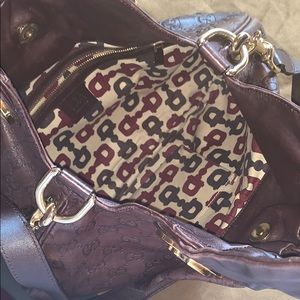 @light26 hello, no worries! There is very light wear on the handles you can see it in the pics, it’s very faint lightening of the leather just around the corners. There is a long strap as pictured that is pretty new looking. There are no odors to the bag, I am a non smoker.