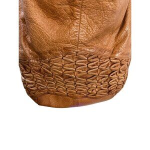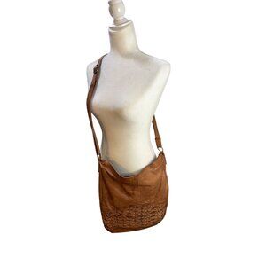 Brown Leather Hobo Shoulder Bag With Woven Detail & Adjustable Strap