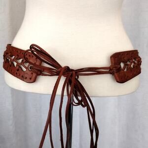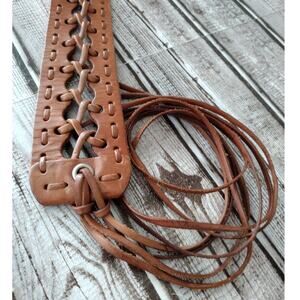 Unbranded // Brown Leather Lace-Up Design Fringe Wrap Belt