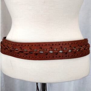 Brown Leather Lace-Up Design Fringe Wrap Belt Women's Small Boho Western