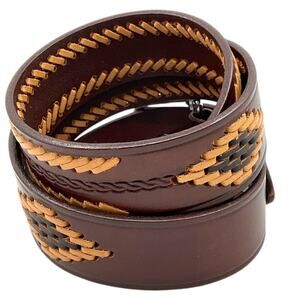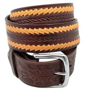 Brown Leather Mens 36 Western Belt Tan Dk Brown Stitching Southwest Rodeo Cowboy