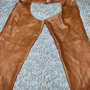 Brown Leather Motorcycle /Horse Riding Chaps 3XL USA