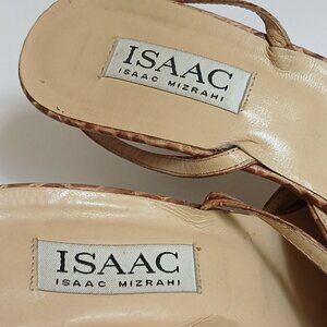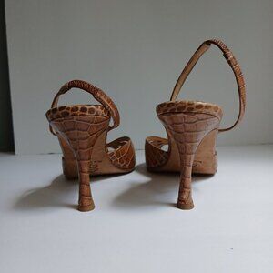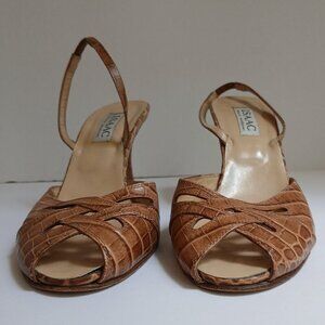 Brown Leather Reptile Print Cut Out PeepToe Sling-Back High Kitten heels Made in Italy. Sz 8.5