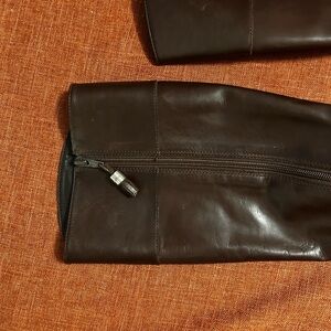 Ralph Lauren Elegant brown leather riding boots. Features a side zipper for easy wear. Perfect for a stylish look. Chocolate Brown leather riding boots size 6.5