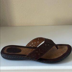 Comfortable brown leather sandals with a stylish design. They haven’t been worn much as you can see from the bottom they are not dirty or show much sign of wear.