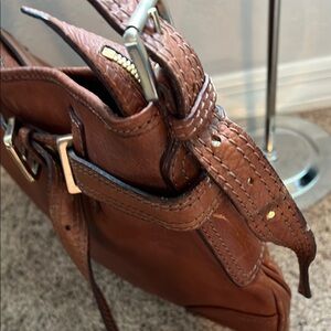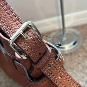 Elegant brown leather shoulder bag with adjustable strap. Perfect for everyday use. Preloved bag so kindly manage your expectations, some stains inside , some pressure dents on the bag and darkening in one side, adjustable bag, has some vintage smell but over all still a good bag, offers are welcome but no low ball pls. Vintage smelling a bit inside