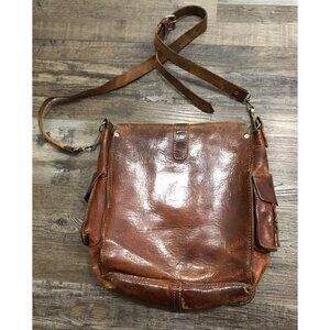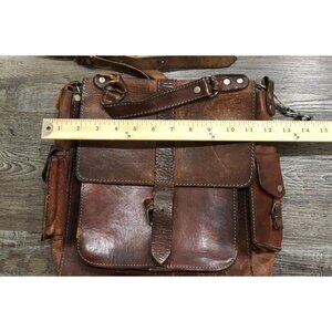 Brown Leather Shoulder Crossbody Messenger Bag with Front Pocket