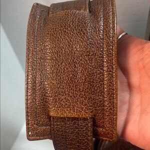 Stylish brown leather sling backpack with multiple zippered pockets. Measurements 17”H x 11”W x 31/2”D The strap does have a couple of tears on backside. Please view all photos for further description.