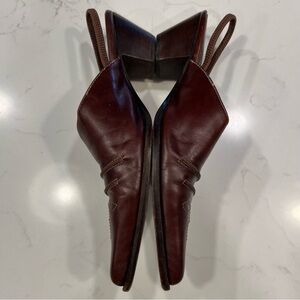 Step out in style with these elegant brown leather slingback heels. Perfect for any occasion.