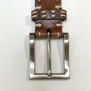 Brown Leather Stitched Belt Medium, Unisex Size Medium